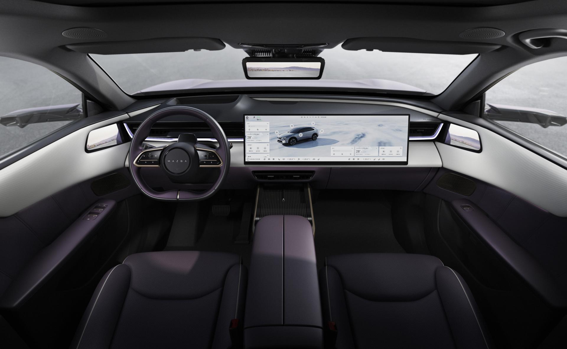 Upgraded "KODO" Aesthetics: Continuing MAZDA's "KODO: Soul of Motion" design gene, the EZ-60 blends futuristic electric technology with modern designs. Its dual-section waistline flows from the hood through the C-pillar to the rear, creating dynamic tension and a sense of motion. And five precision-engineered surfaces on the vehicle body deliver boundless light and shadow effects. The EZ-60 is the first electric SUV to introduce a D-pillar air duct design, complemented by 9 air ducts across the vehicle for aerodynamic optimization, reducing overall drag coefficient by 60.8 counts, extending driving range by 41 Km, and generating up to 705 N of downforce on the rear axle. This enhances handling responsiveness and stability and reduces wind noise during driving, delivering driving pleasure comparable to that of a million-dollar supercar.