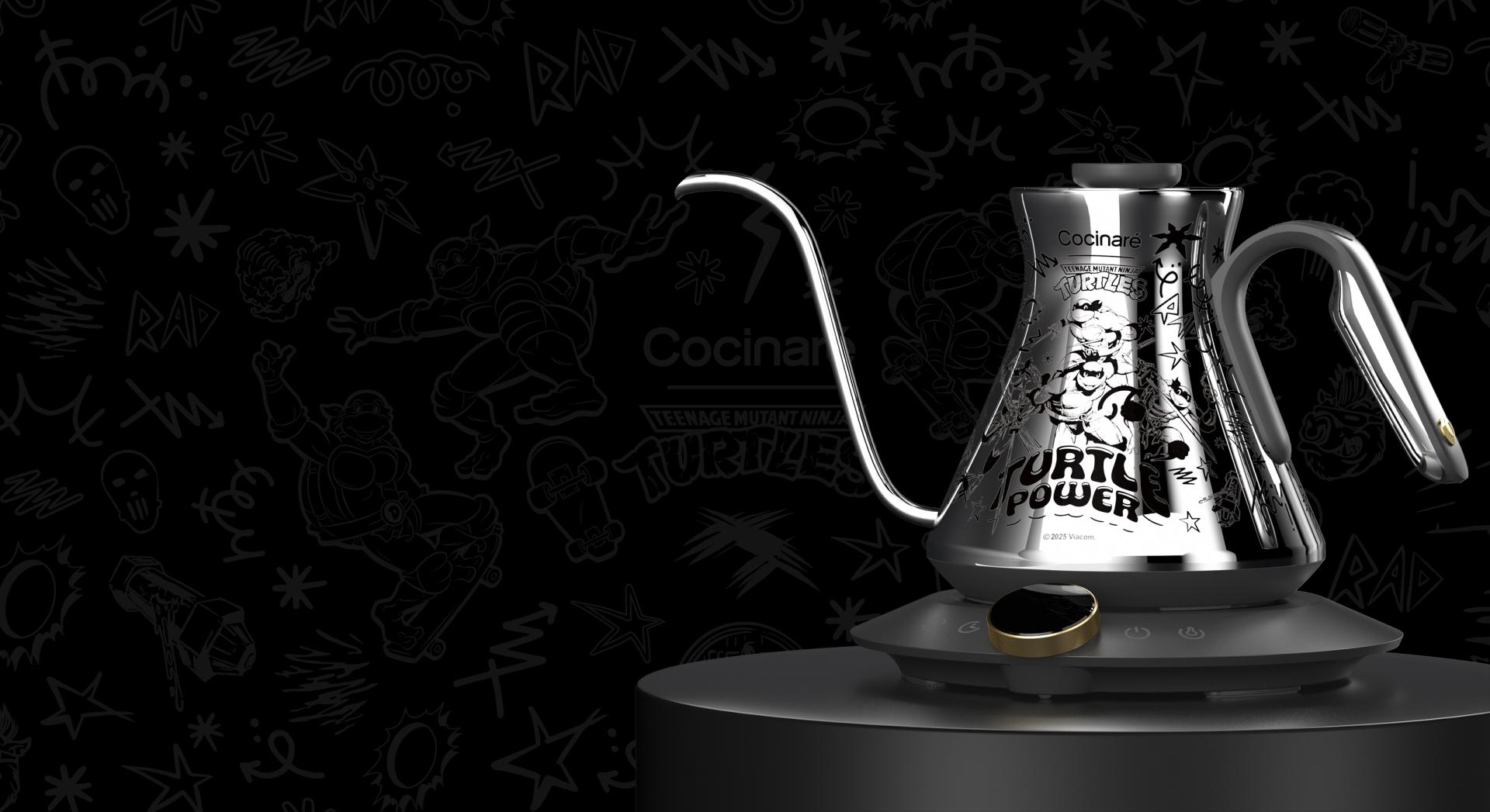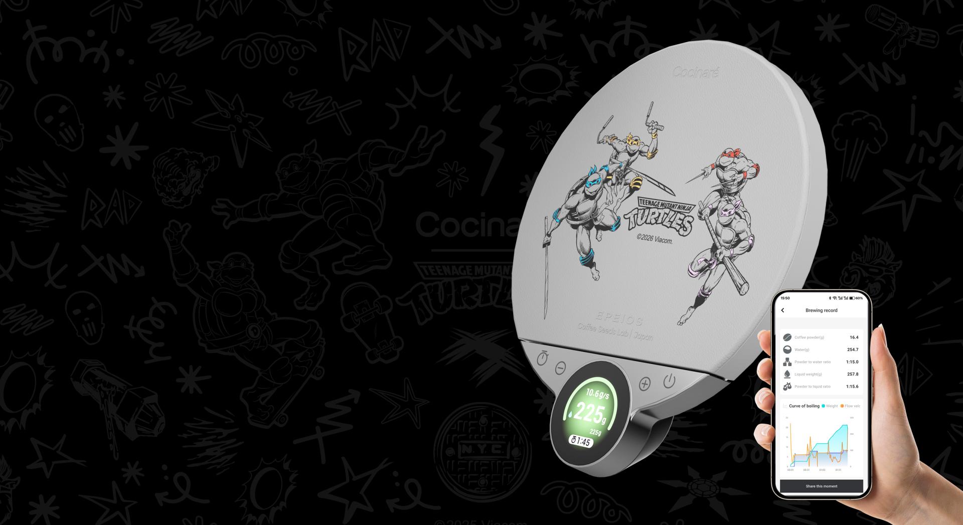 The overall experience is elevated by the scale’s color LED interactive UI, mimicking a "racing dashboard," and the TasteSet’s vortex-inspired fluid dynamics which heighten sensory engagement. Socially, the series champions sustainability through modular, repairable metal construction—including aircraft-grade aluminum—significantly extending product life cycles over disposable alternatives. By integrating the Turtles' spirit of self-evolution with ergonomic care and professional specs, Cocinare creates a "Mutant Night" where every brew is an expression of the user’s coolest self, turning a routine necessity into a functional masterpiece.