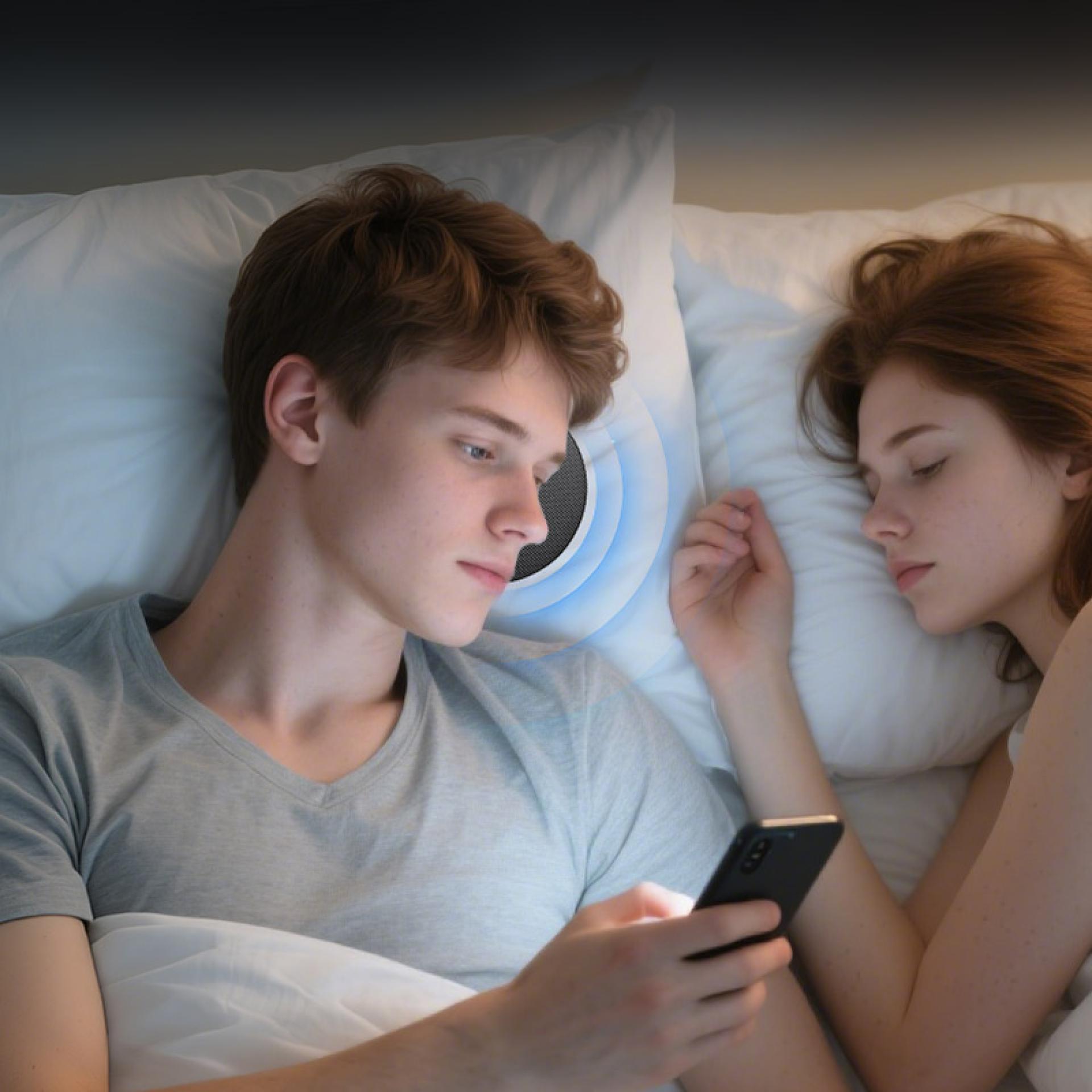 OOBANG Pillow Audio Disc is a bedside audio device designed for sleep and relaxation scenarios. The product adopts an ultra thin circular form that can be placed naturally under or beside a pillow. Through a directional sound field, audio is delivered toward the ear area, allowing music, white noise, or storytelling content to be heard clearly without wearing headphones. The design follows the concept of a pillowside music space, providing an immersive listening experience while maintaining a comfortable sleeping posture. This approach reduces the pressure and discomfort often associated with headphones and helps limit prolonged smartphone use before sleep, creating a quieter and more relaxing nighttime environment.